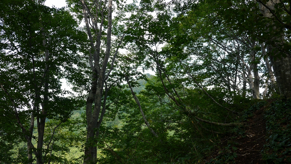 この辺り、信越トレイルの中で有数のブナ林が綺麗な場所になる。