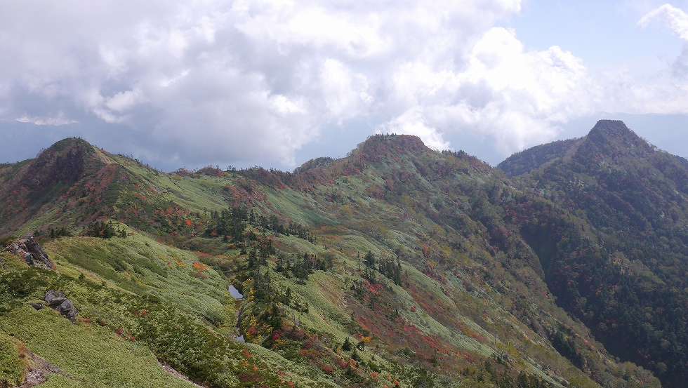 2つの剣ヶ峰に比べると地味めな山容だった。