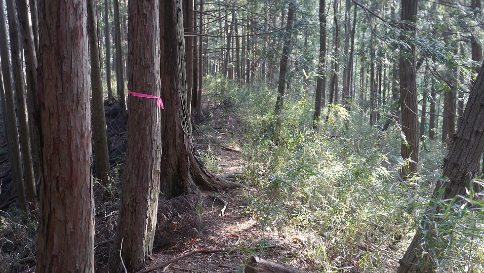 歩いてる最中に気付いたのだが鹿の食害避けのネット(木に巻いてあるやつ)に沿って進路を取るのが正解だった。