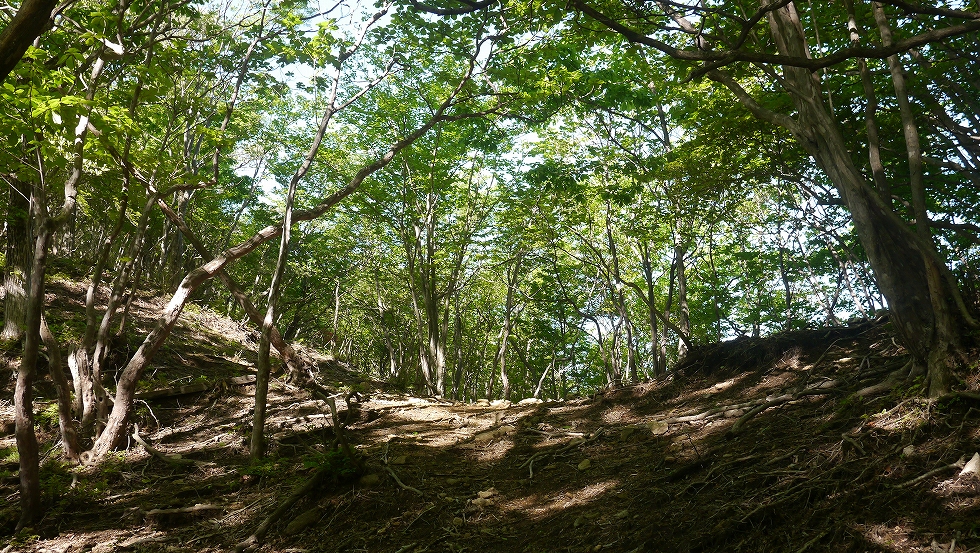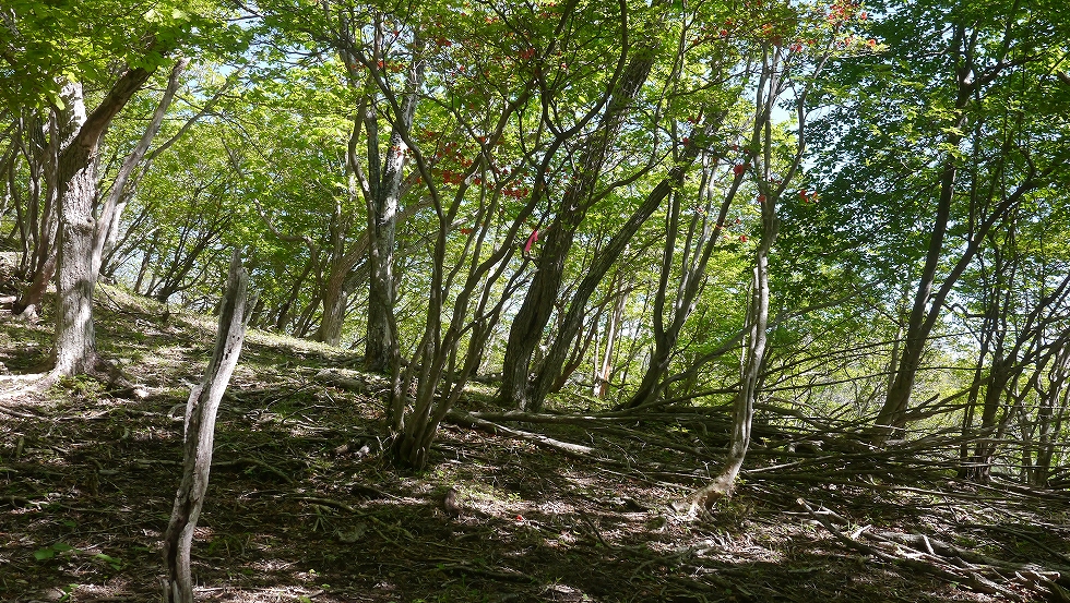 左に踏み跡があったのでそちらへ進んだが後で地形図を確認すると右の方が地形が緩やかだった。