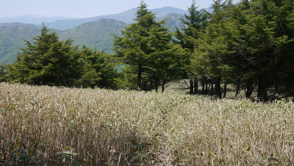 道は、あったりなかったりだったが樹木の近くに行くと日陰が出来易いようで笹の勢いが弱まっていた。