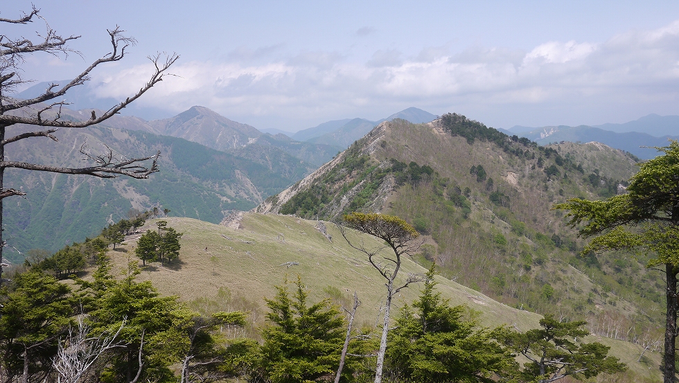 中倉尾根に来てから見えなくなっていた袈裟丸山の稜線が目に入った。