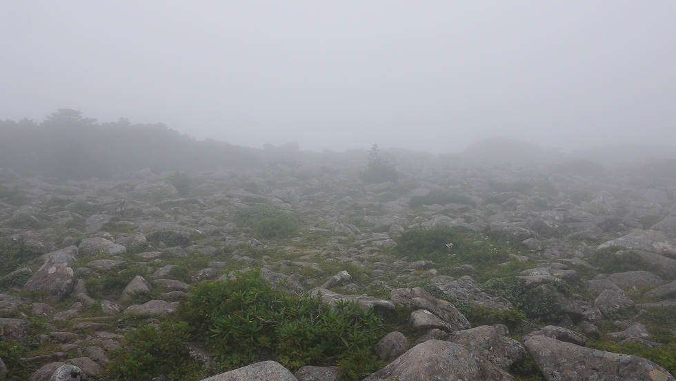 西大嶺は凄く開けた場所なのだがガスってて何も見えなかった。