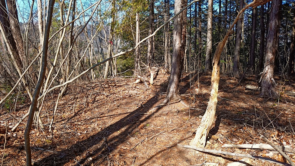 ここまで道がなく急勾配でおまけに枯れ葉が堆積していて思いっ切り歩き辛かった。