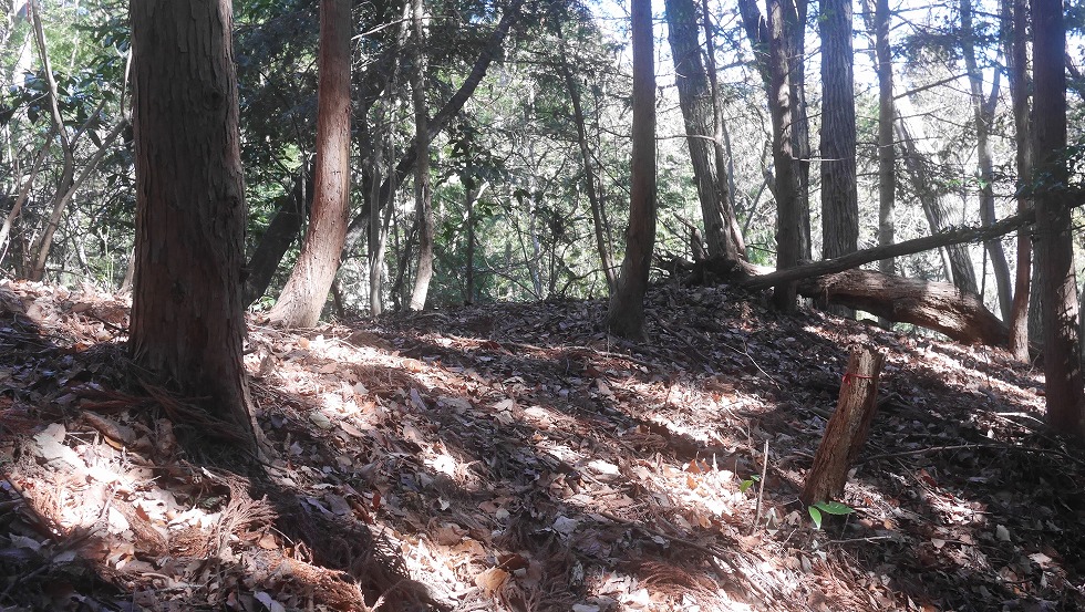 尾根が細くなると言うか明らかに人工的な地形だった。
