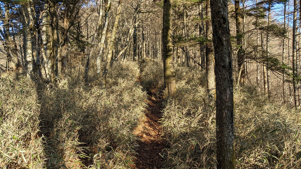 山と高原地図の情報だと手前よりこの辺りの方が笹薮が深いとなっていたが逆だった。