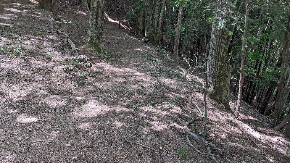 ここからの下りのルートが不明瞭だったが山と高原地図で破線で表されている。