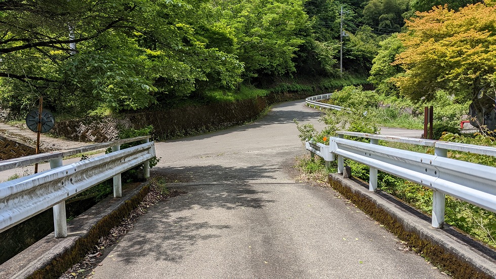 ここを左折すると普通にすれ違いが出来る道幅の道路となる。