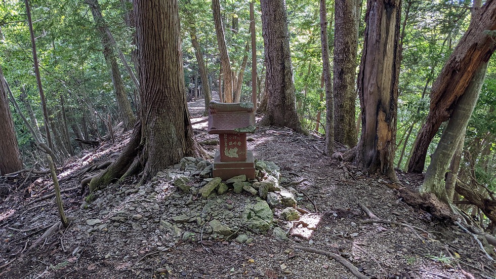 サクラ沢峠の直ぐ手前に赤く塗られた石祠が存在した。