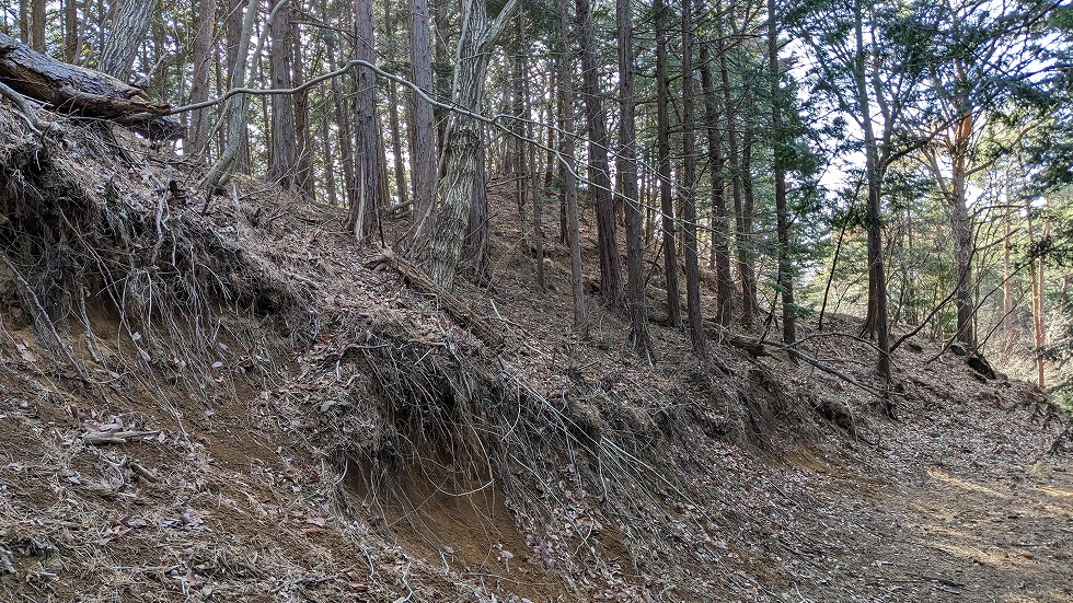 切り通しになり作業道は尾根から離れそうだったので尾根に取り付いてしまう。