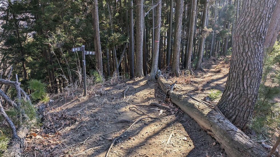 道標の足の部分に岡平と書かれていたがここが主稜線の離脱ポイントになる。