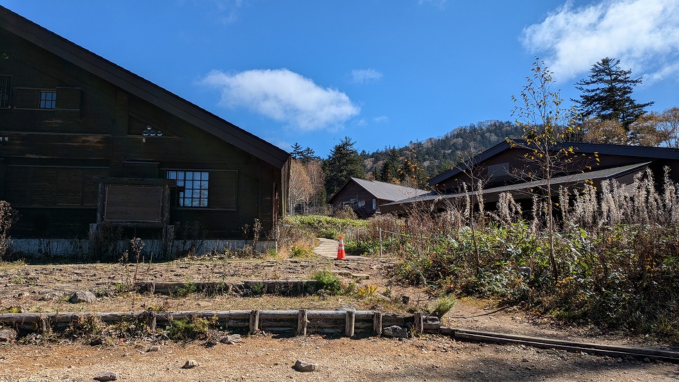 山小屋が数件あったが営業を終えた小屋の方が多い感じだった。