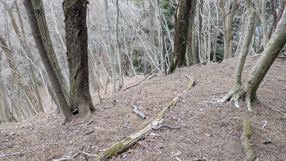 本日のルート上で最も急な下りになるが山道の上を歩けば何も問題なかった。