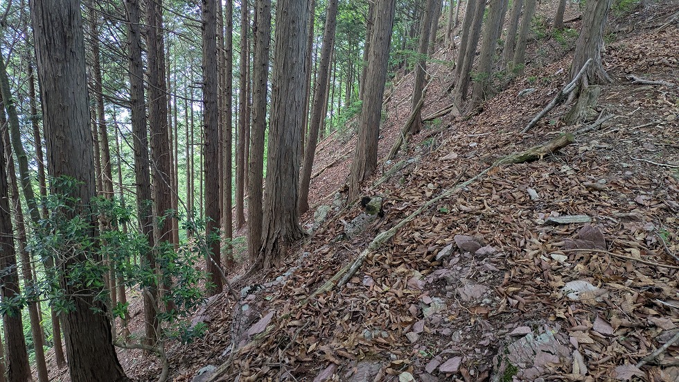 山道は無く、踏み跡が多少付いてる程度で何処を歩くか悩みながら歩を進めた。