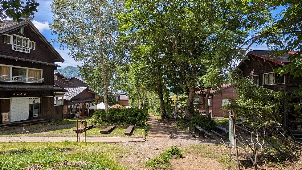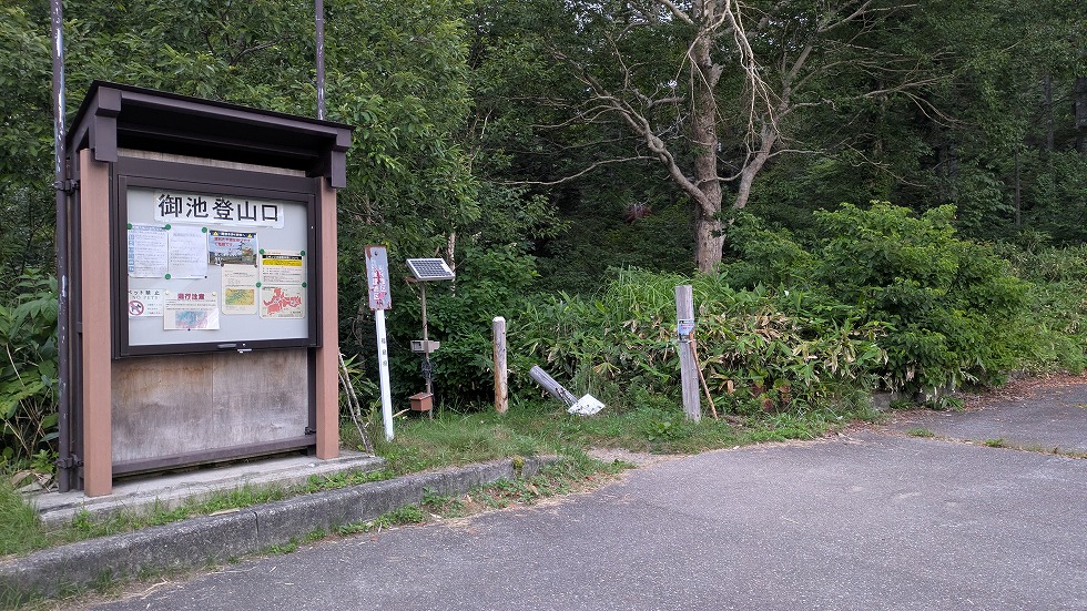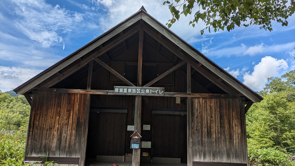 温泉小屋の向こうが公衆トイレでこれが御池までの最後のトイレになる。
