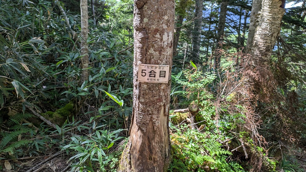 こちらのコースにも合目を表すプレートが設置されていた。