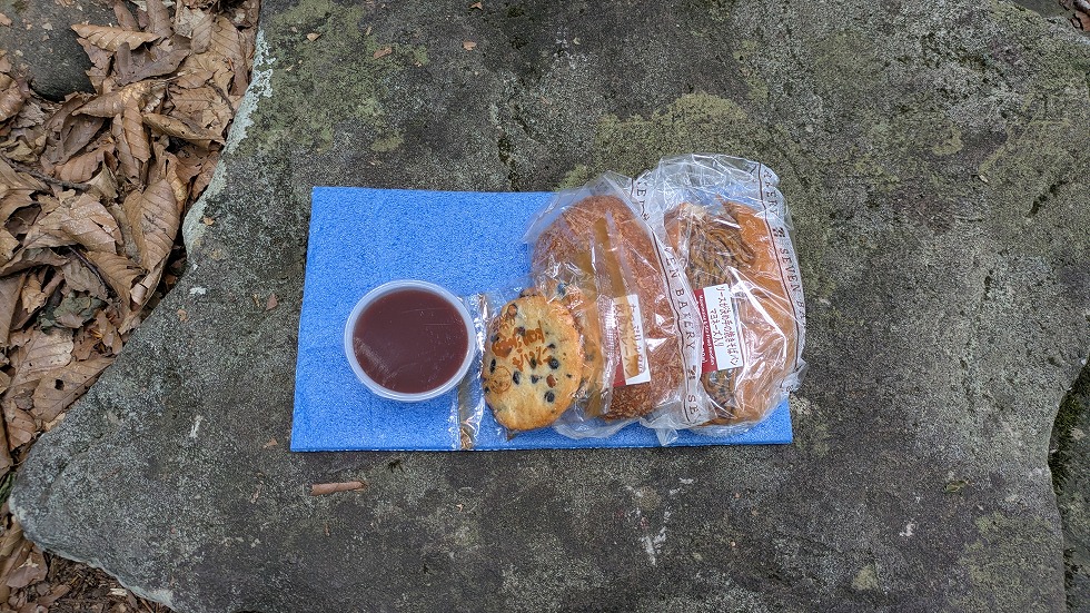 ベンチは、なかったが座り易そうな岩があったのでそれを利用してランチにした。