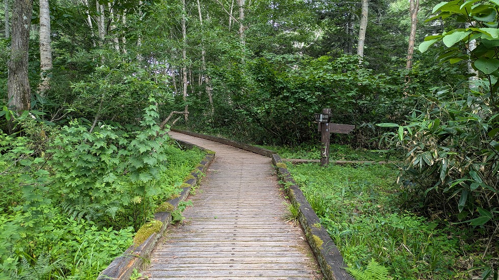 新しい感じの木道が現れた。