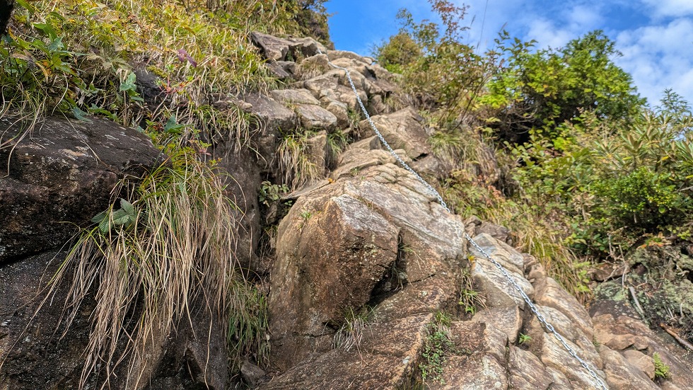 本日のルート上には沢山の鎖場があったが最初の方は視覚的に厳しく下を見ないようにして通過した。