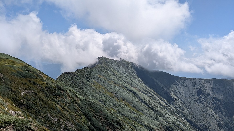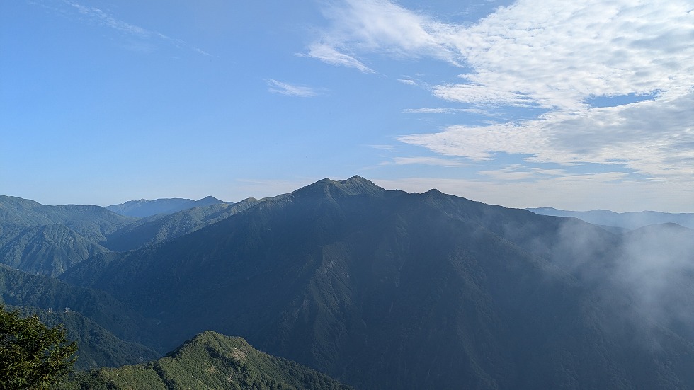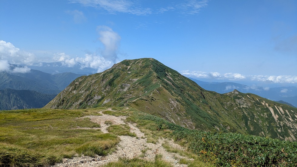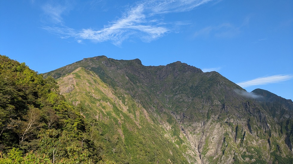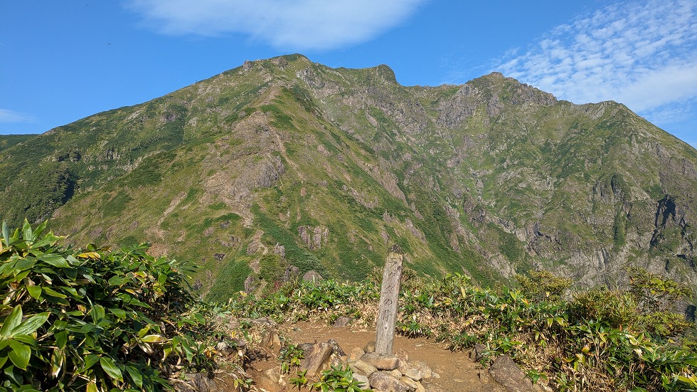 右側のこの山が目に付いたが3百名山の朝日岳だった。