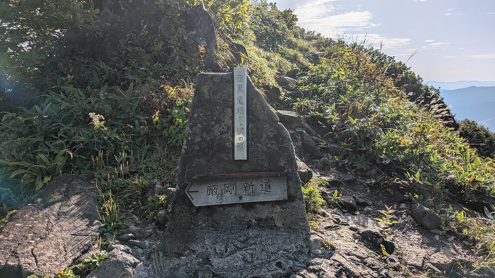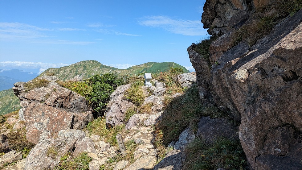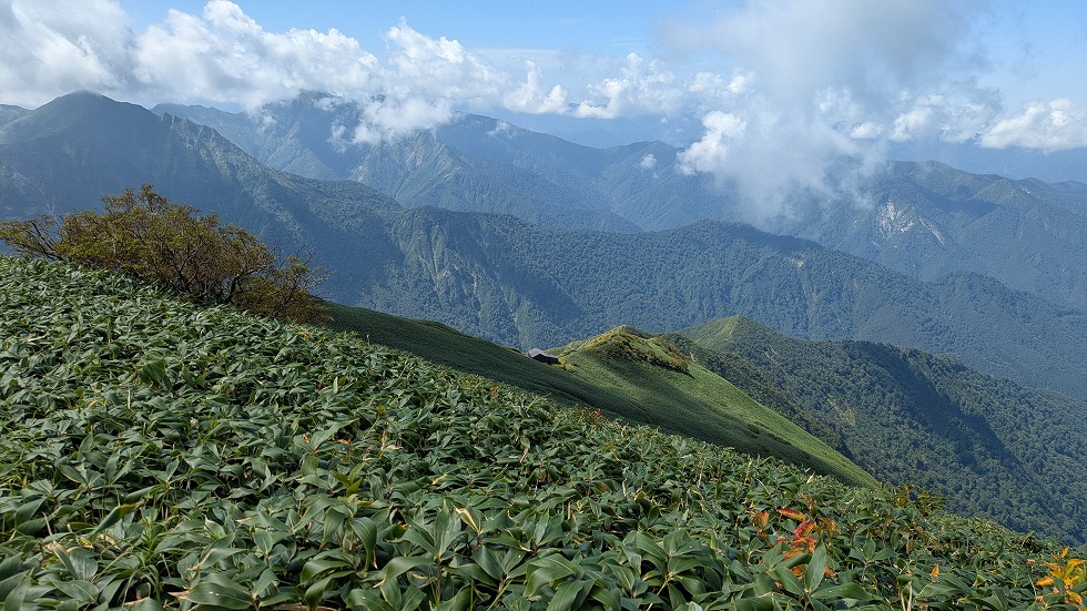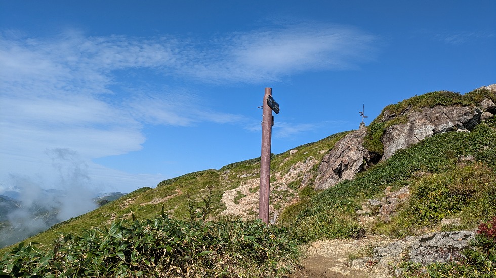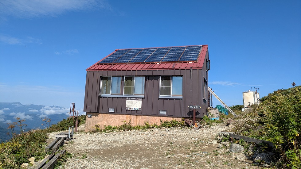 肩の小屋は万太郎山方面との分岐でもあった。