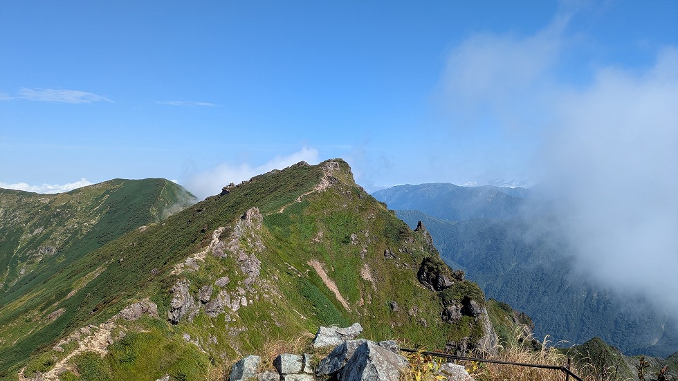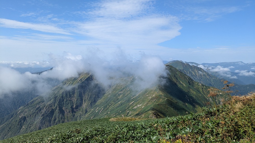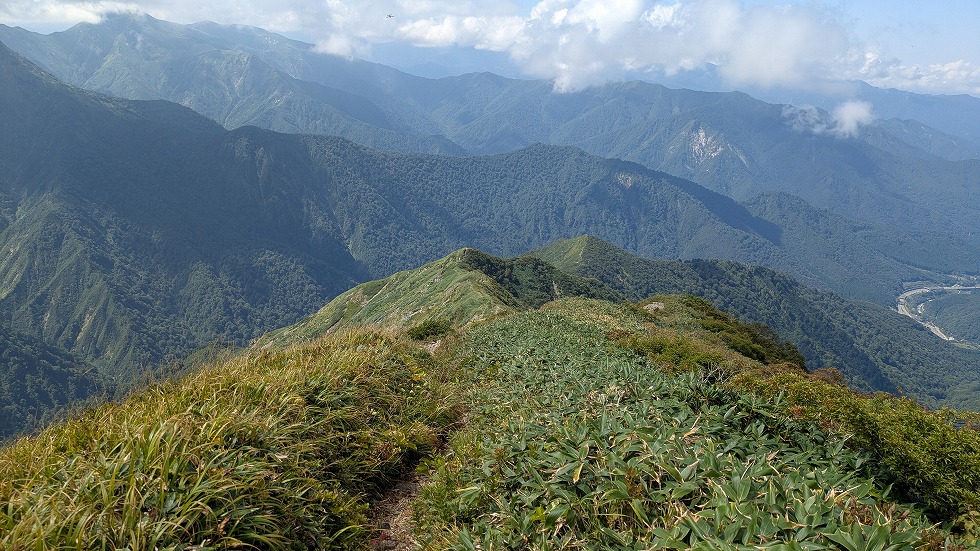 茂倉岳からは本日の終点付近が見えていた。