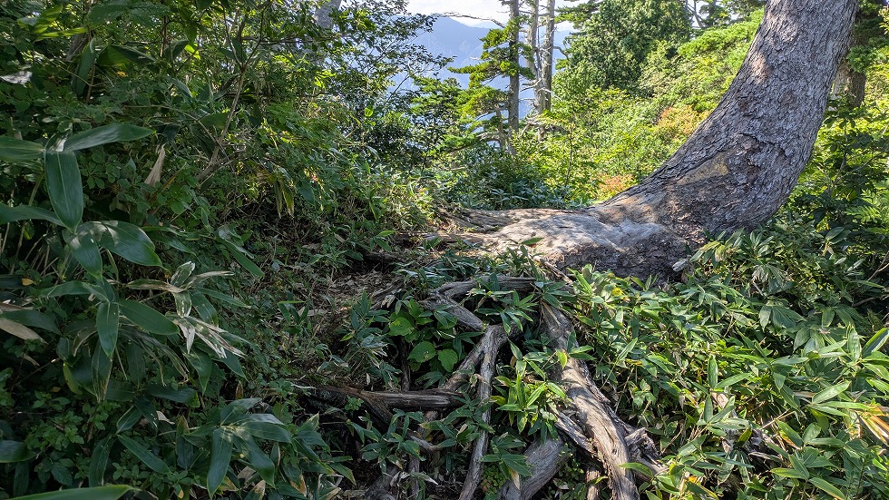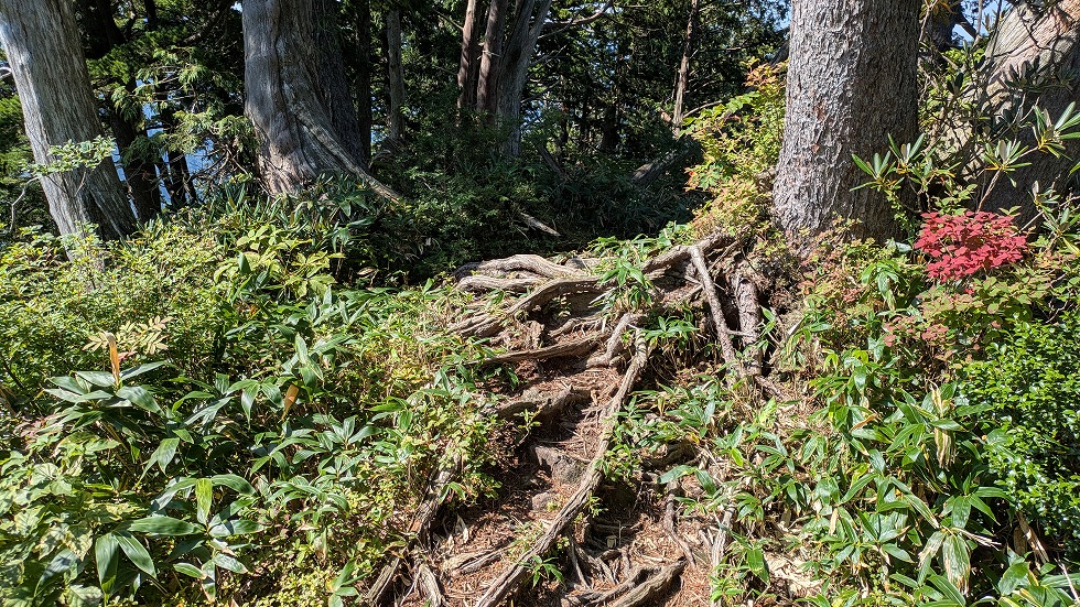 山と高原地図の情報通り、木の根が露出してる所が結構あって、地味に体力を奪われた。