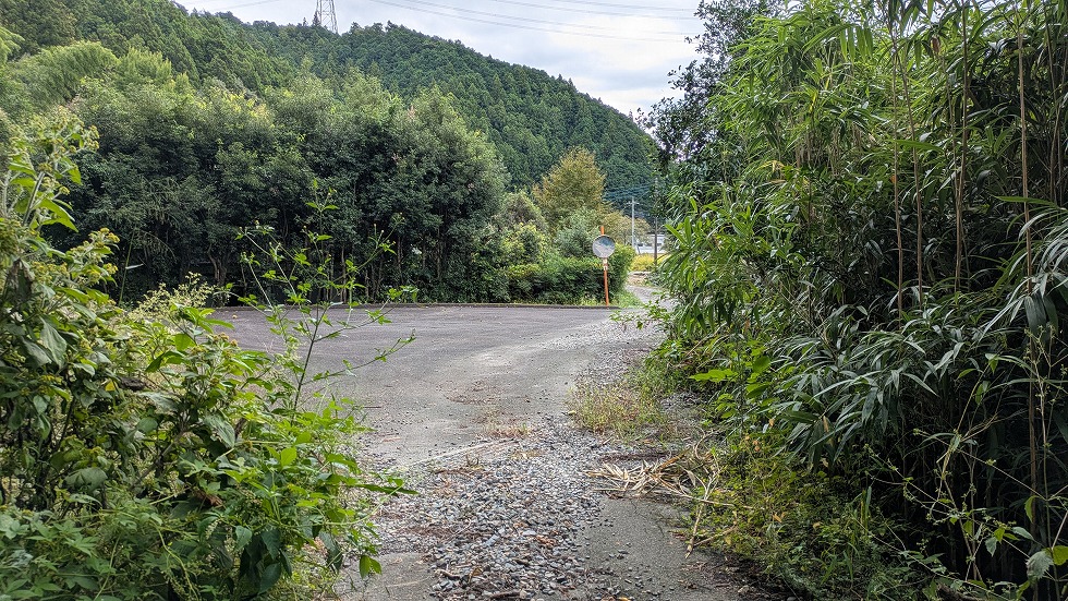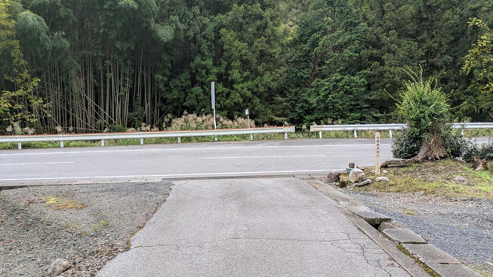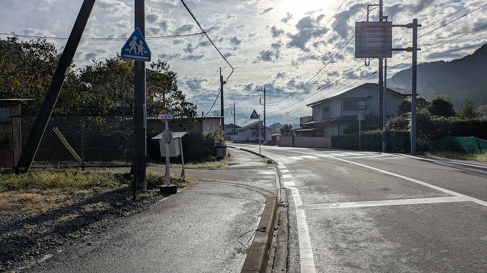 県道240号線を約500m歩き、バス停の所を左に入って行く。