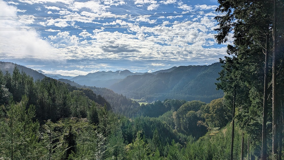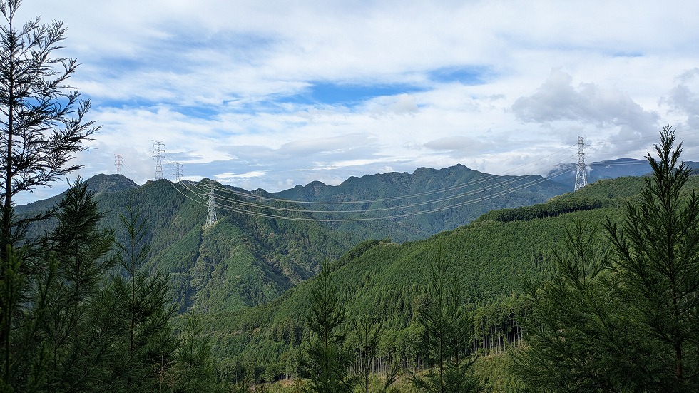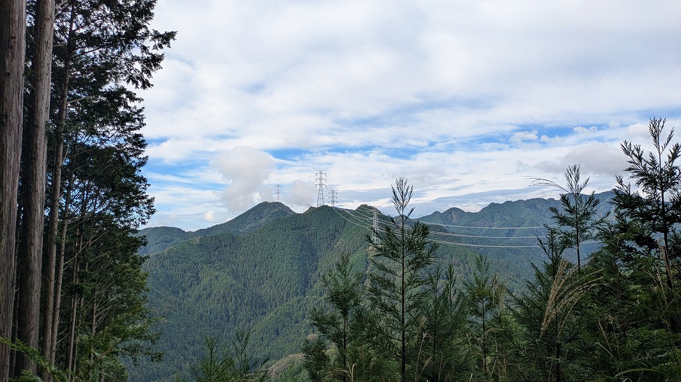 送電鉄塔を過ぎると古い伐採地みたいで眺めが良かった。