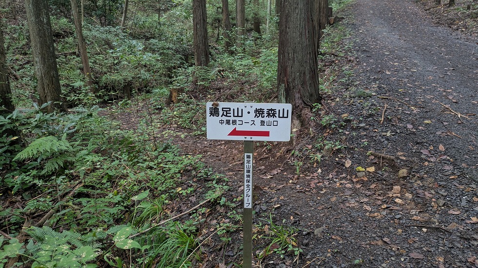 案内によると枝道は鶏足山と焼森山の間に至るルートへの連絡路だった。