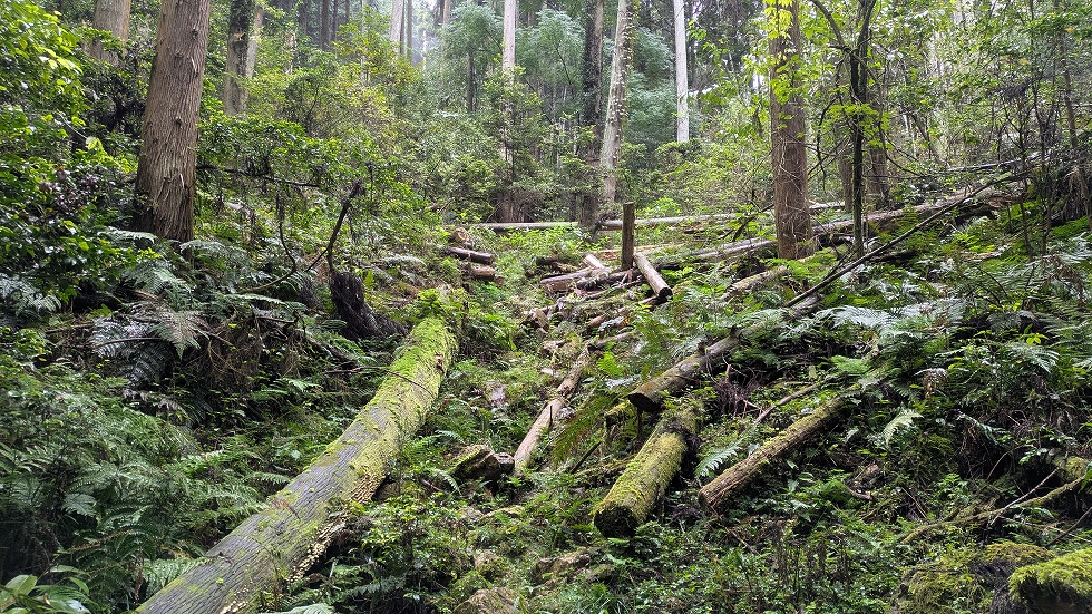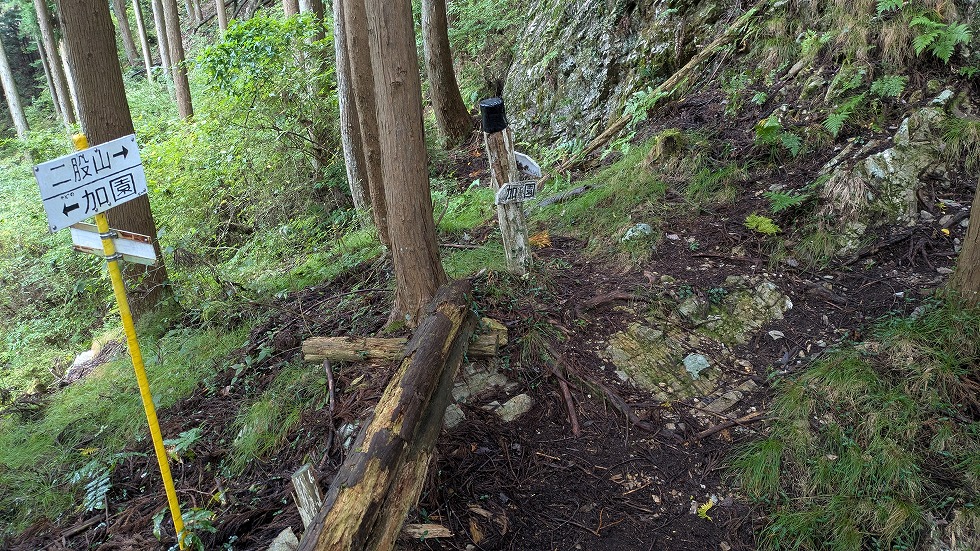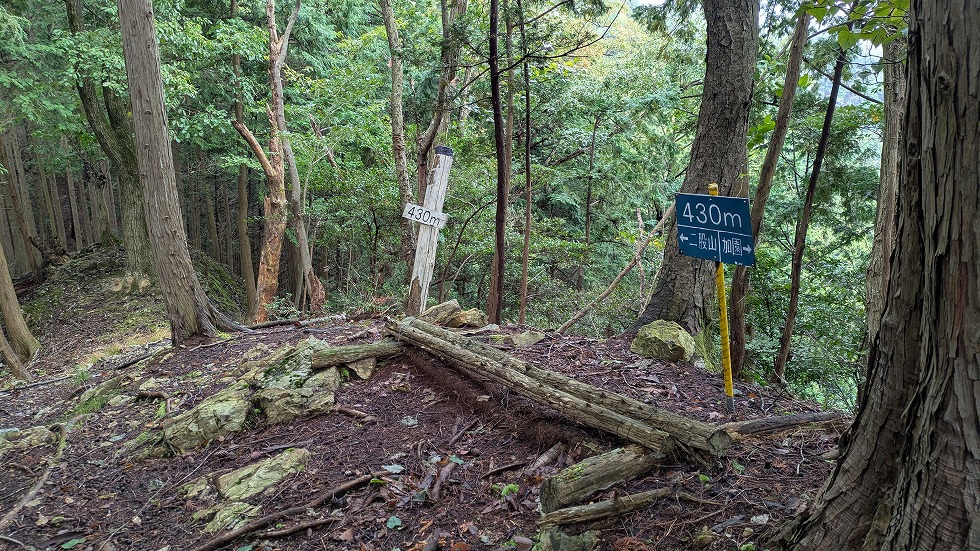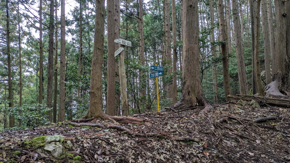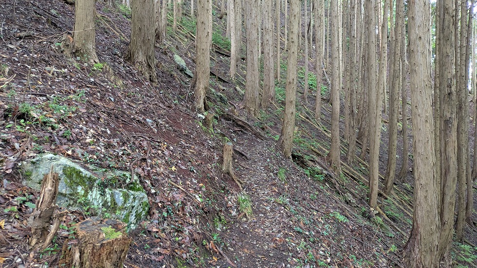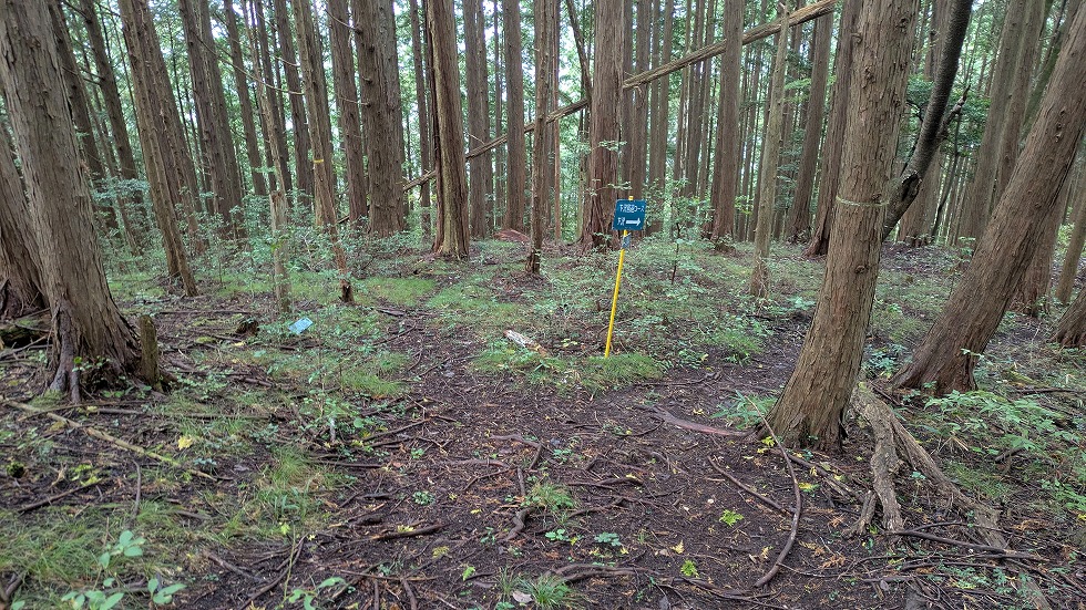 右側にも登山道があったがそれが上りのルートの途中にあった下沢方面の枝道になる。