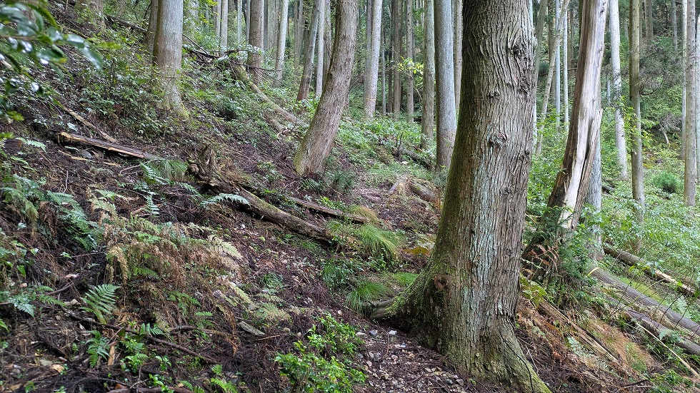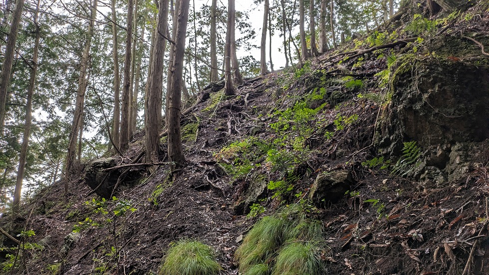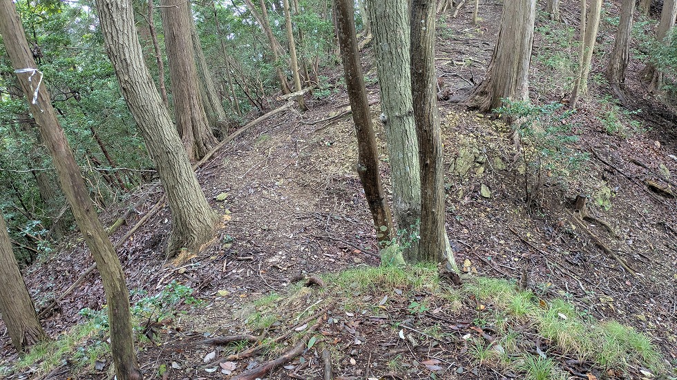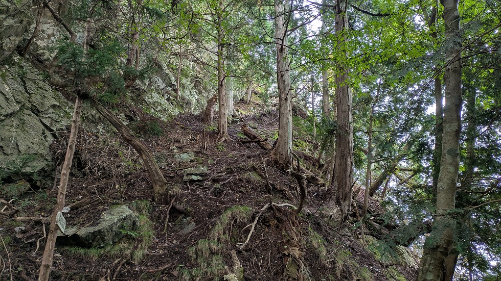 尾根に上がるまでは、あちこちに移動する登山道で一部荒れていた。