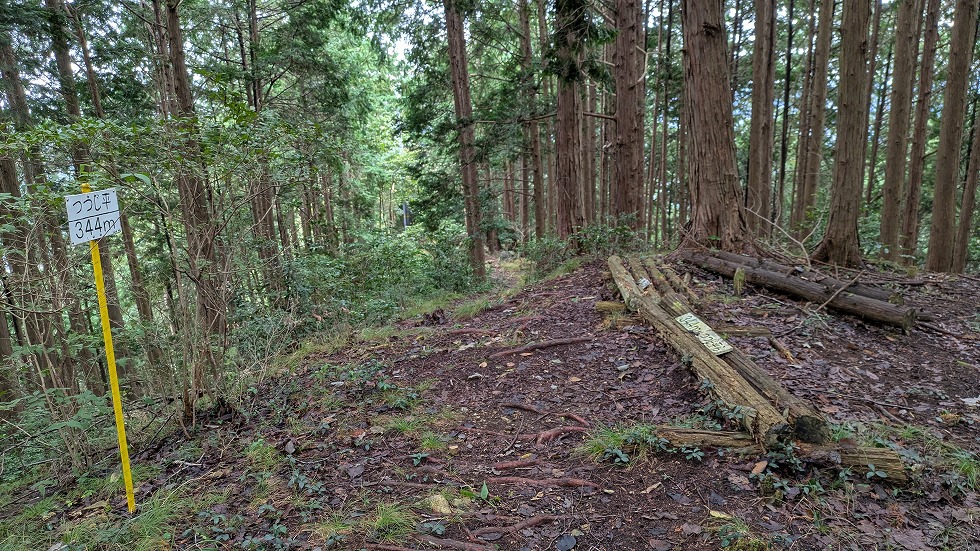 つつじ平344mと言う案内が設置されていたが標高点では、なかった。