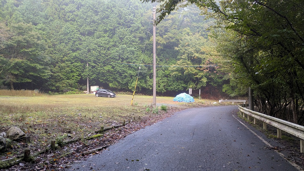 広場になってる所が登山口になるが案内は何処にも見当たらなかった。