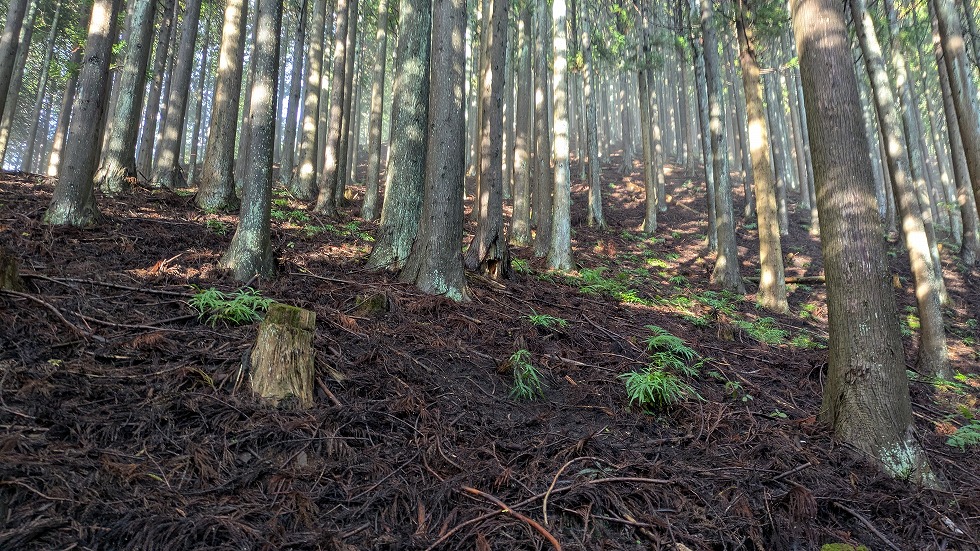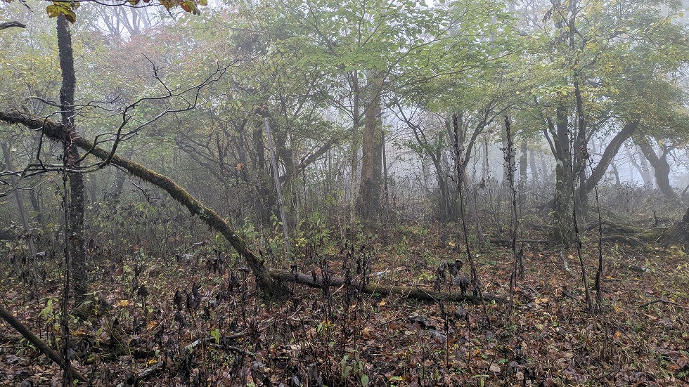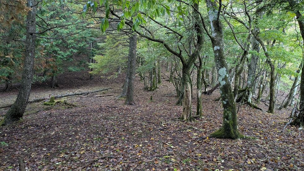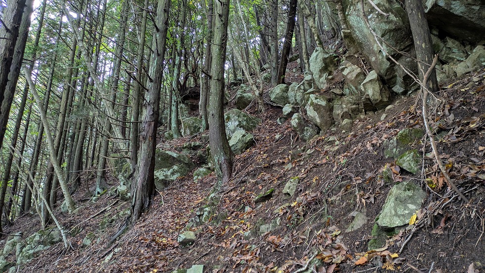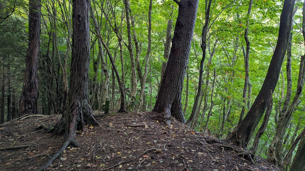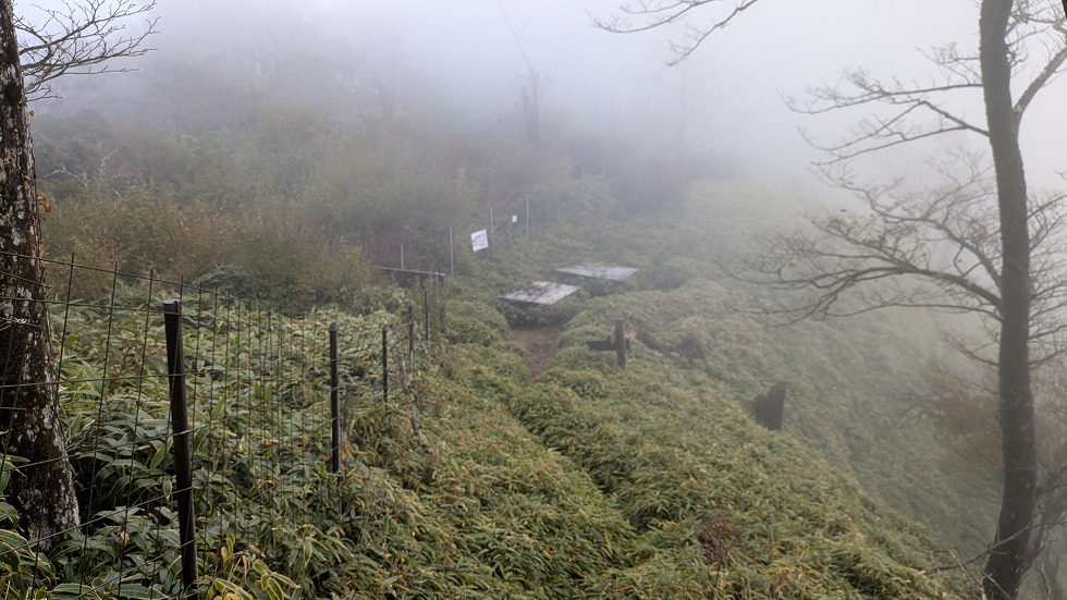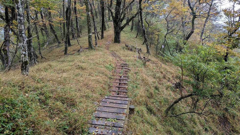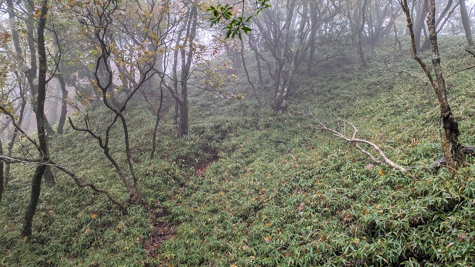 と同時に山道は不明瞭になるが何処でも歩ける状態だった。