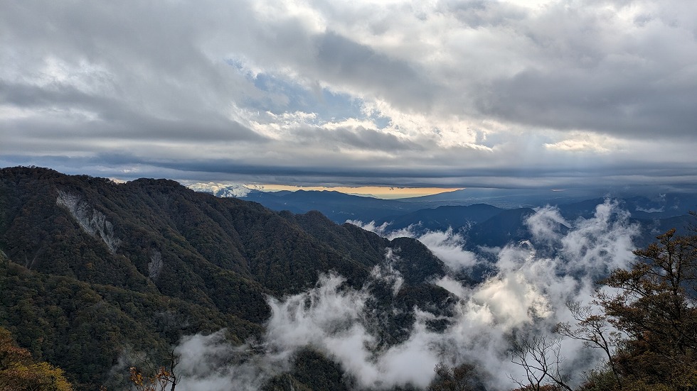 休憩中、結構な量の雨が降ってきたので急いで上着を羽織り、犬越路へ向け下降した。
