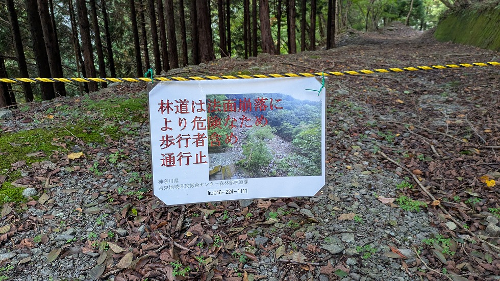 法面崩落で通行止めになっていた。
