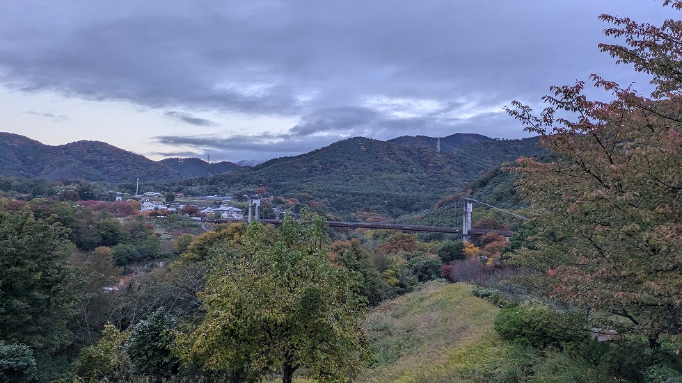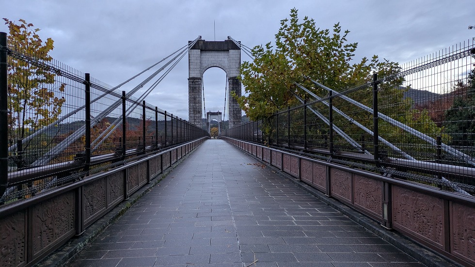 巨大な吊橋(風の吊り橋)が見えてきたがこれを渡る事になる。