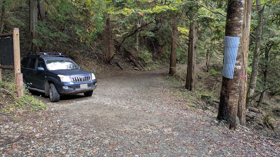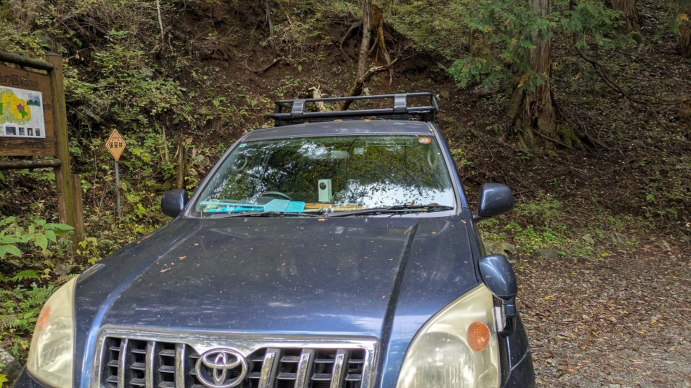 林道の終点にはプラドが停まっていたが良く見るといたずら防止のためだと思うがカメラが仕掛けてあった。
