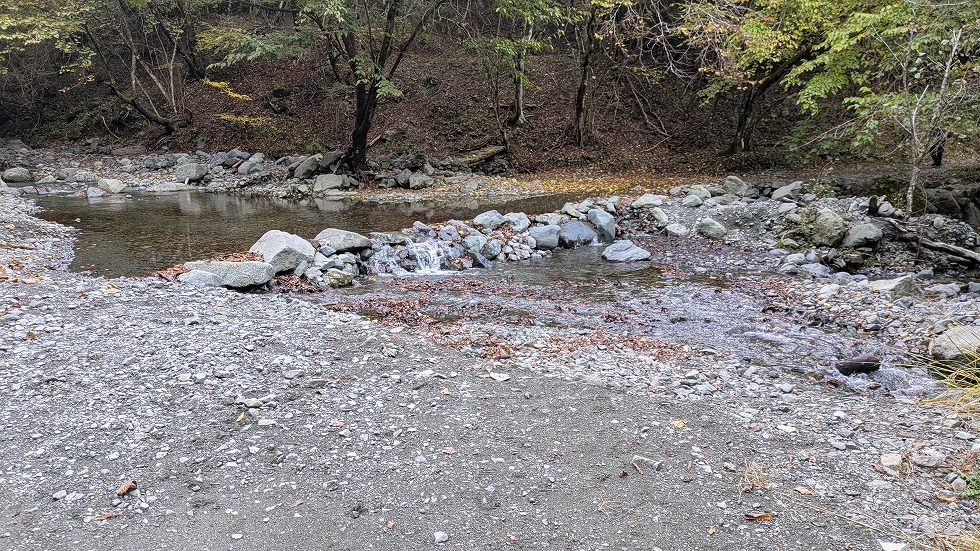 結局、1番細い場所をトレッキングポールを利用して飛び越えた。