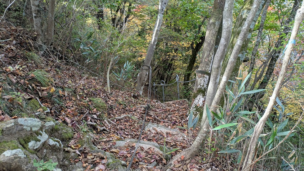 数ヶ所、崩れかけている場所があったがそう言う所には補助ロープが設置されていた。