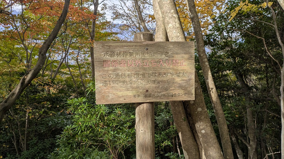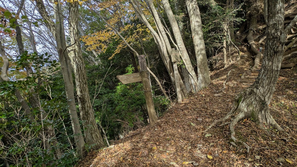 中途半端な場所に道標があったので確認すると水源の管理作業道となっていた。