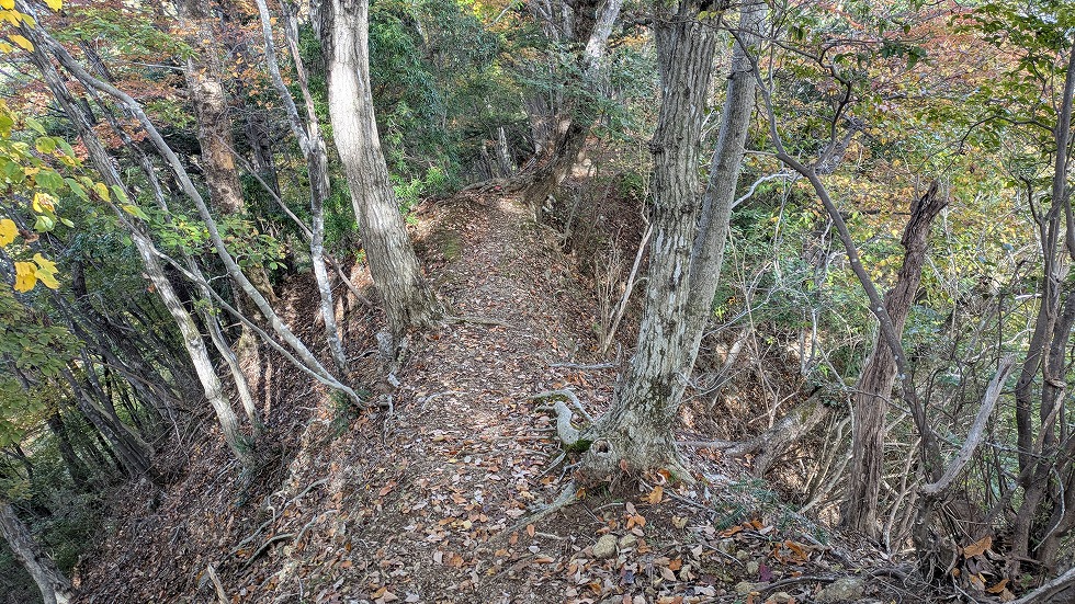 尾根が細くなってきたがこちらも全然大した事がなかった。