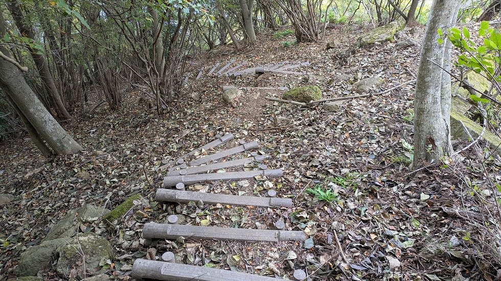 コンクリートの階段で急激に高度を下げる。