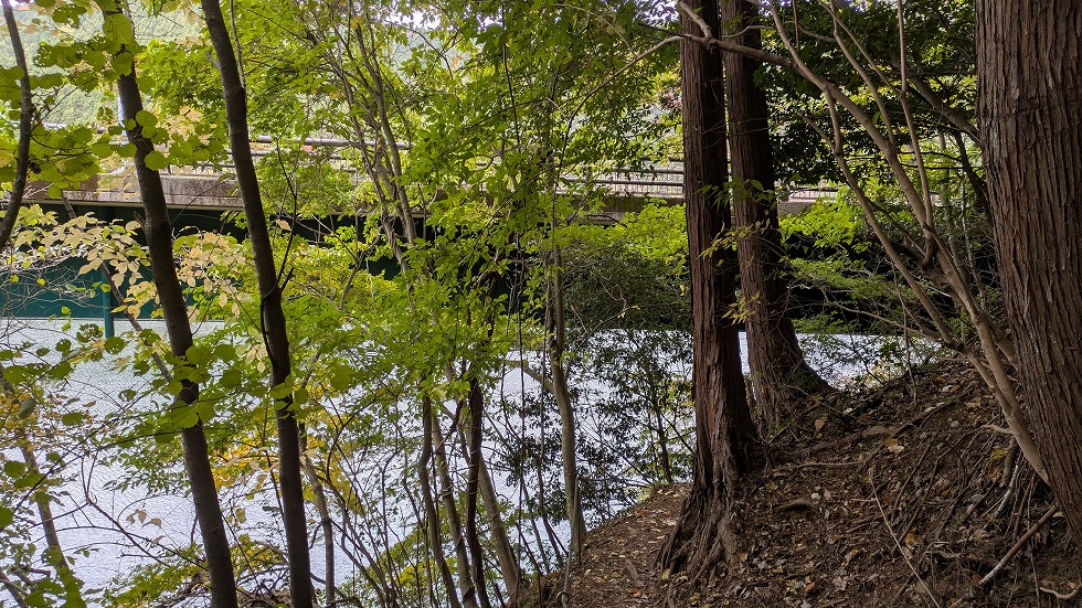 宮ヶ瀬湖に掛かる橋が見えてきた。