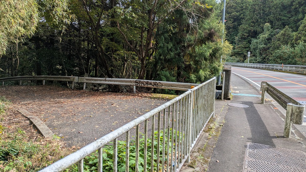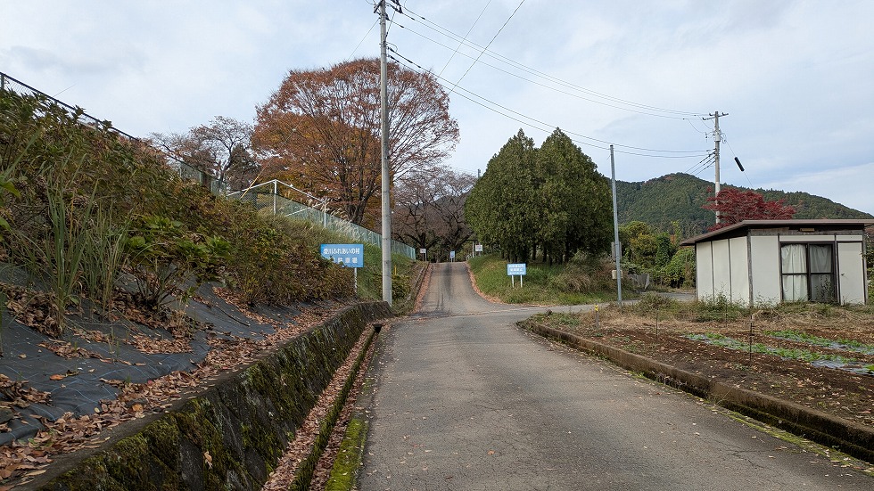 左側に枝道があって、これを下って行けば宮ヶ瀬湖の湖畔に至る。
