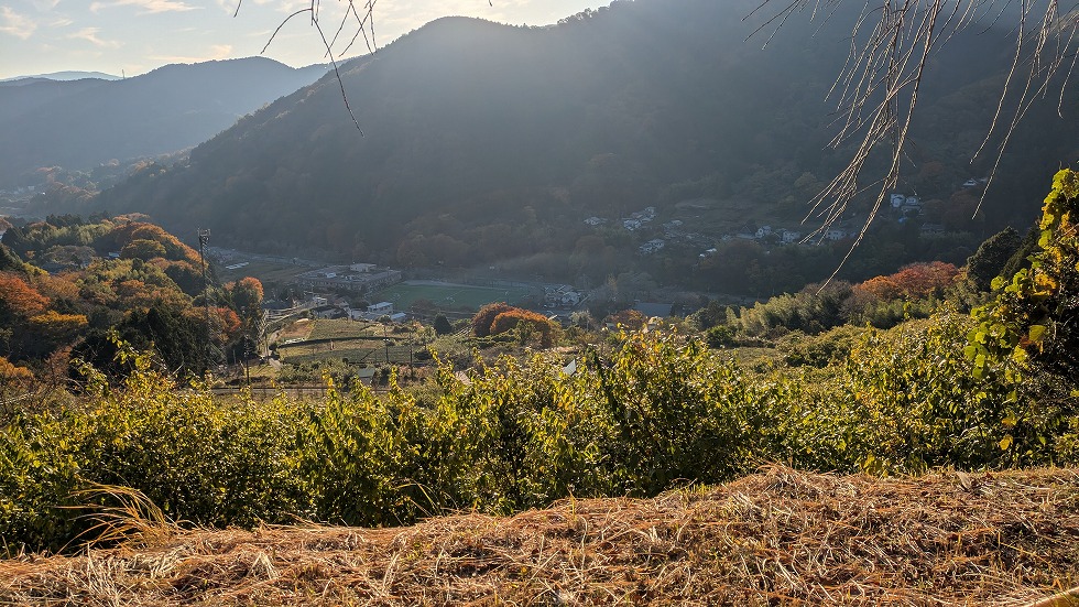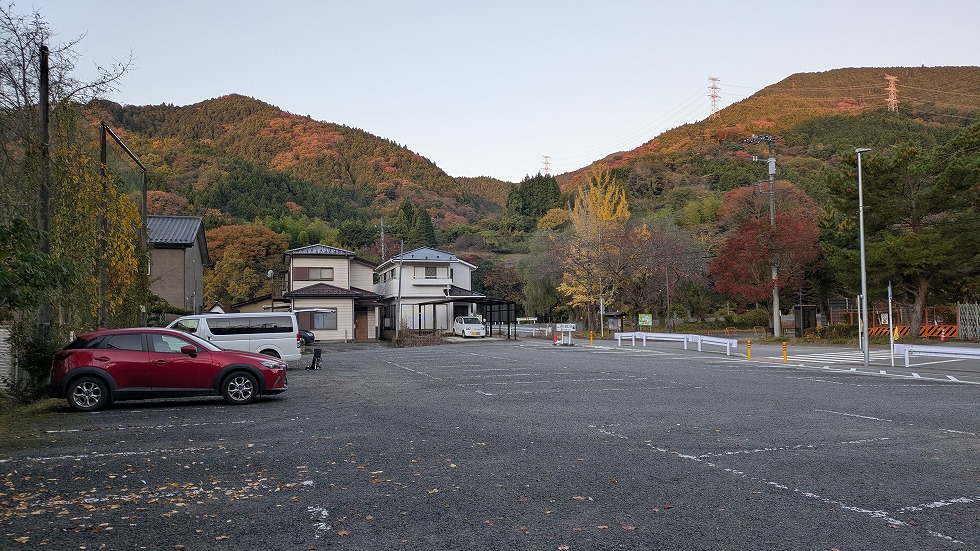 | 下山口付近から下界を覗き込むと本日の駐車地が確認出来た。 |