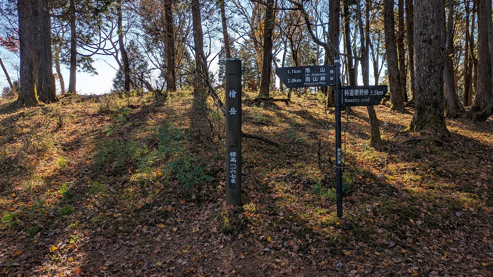 1番手前の尖り気味の山が雨山でその左側が檜岳になる。