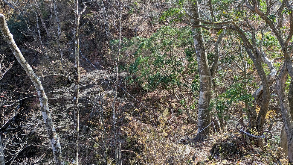鍋割山を下って行くと栗ノ木洞が目に入ってくる。