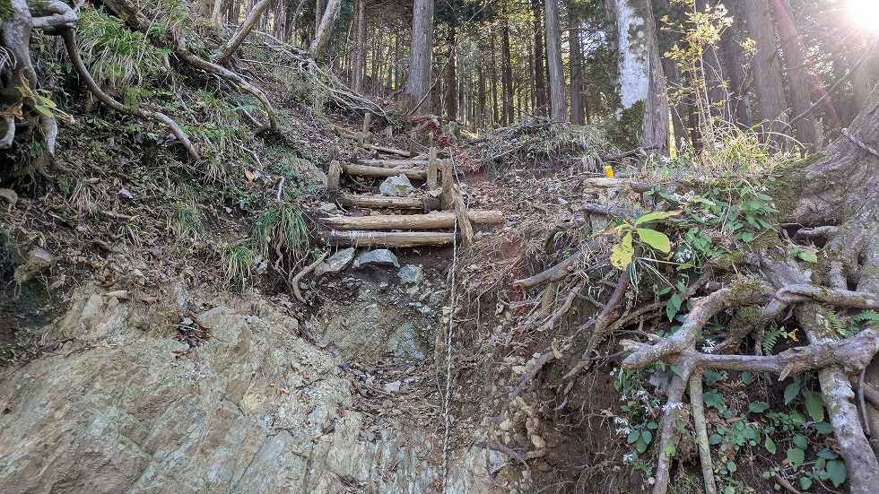 ようやくこの辺りで今歩いているルートが廃登山道と理解した。